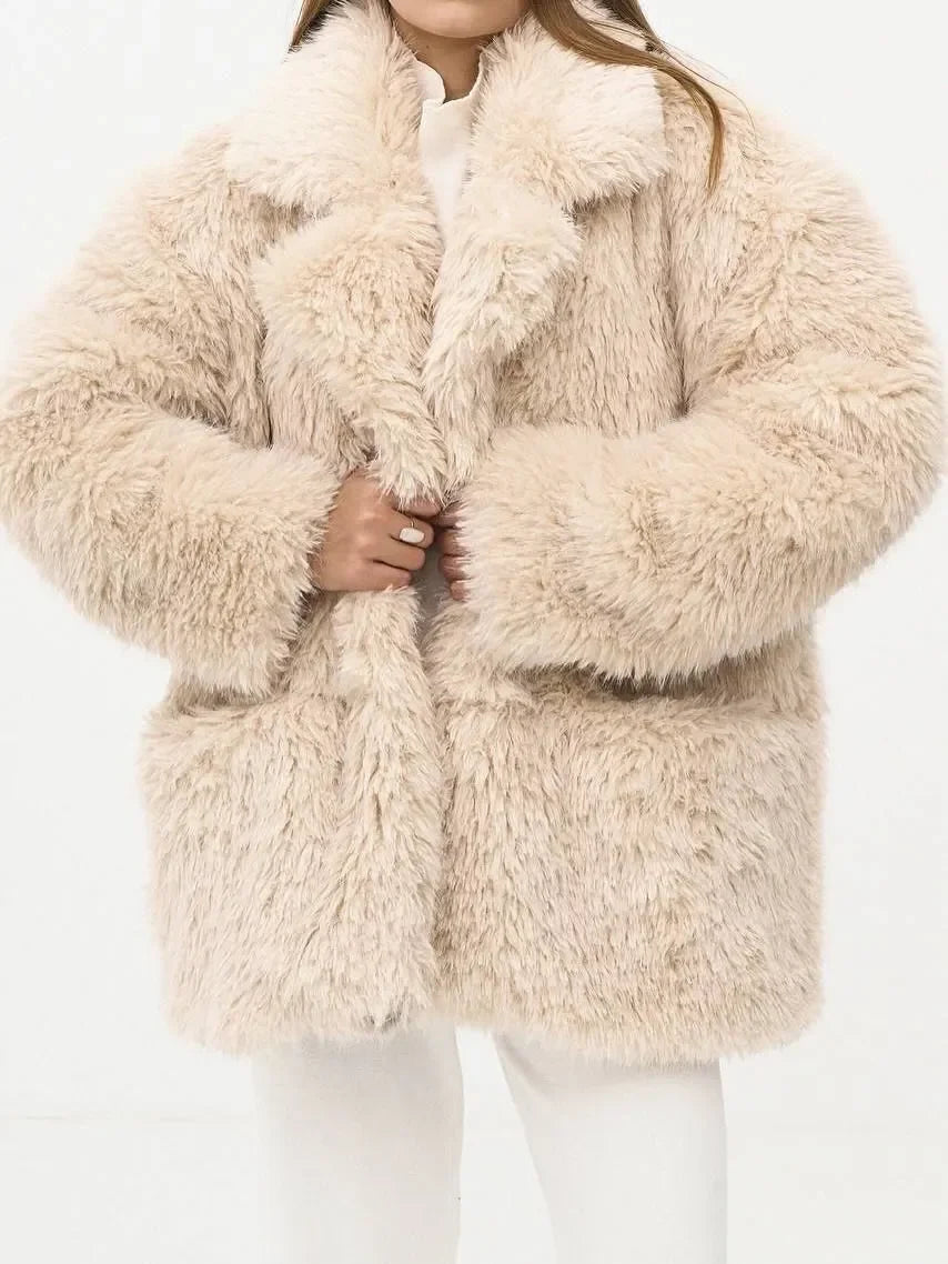 Model Number: Luxury Women Solid Lapel Faux Fur Coat